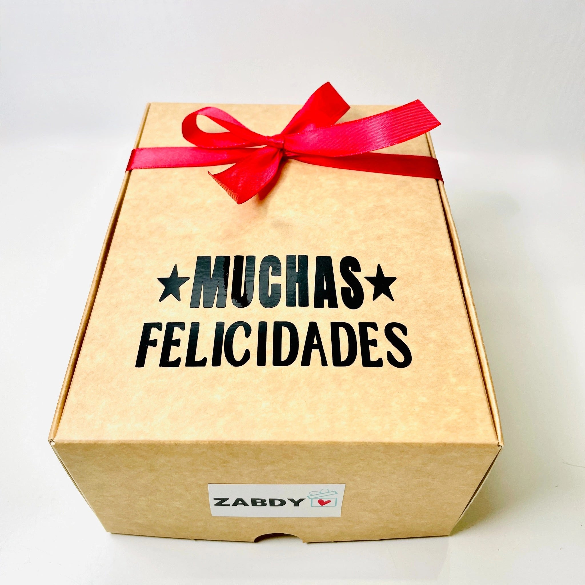 Incluye una taza con mensaje grabado y una presentación cuidada al detalle, con decoración interior y mensaje inspirador: “Hoy es un día perfecto para ser feliz”.