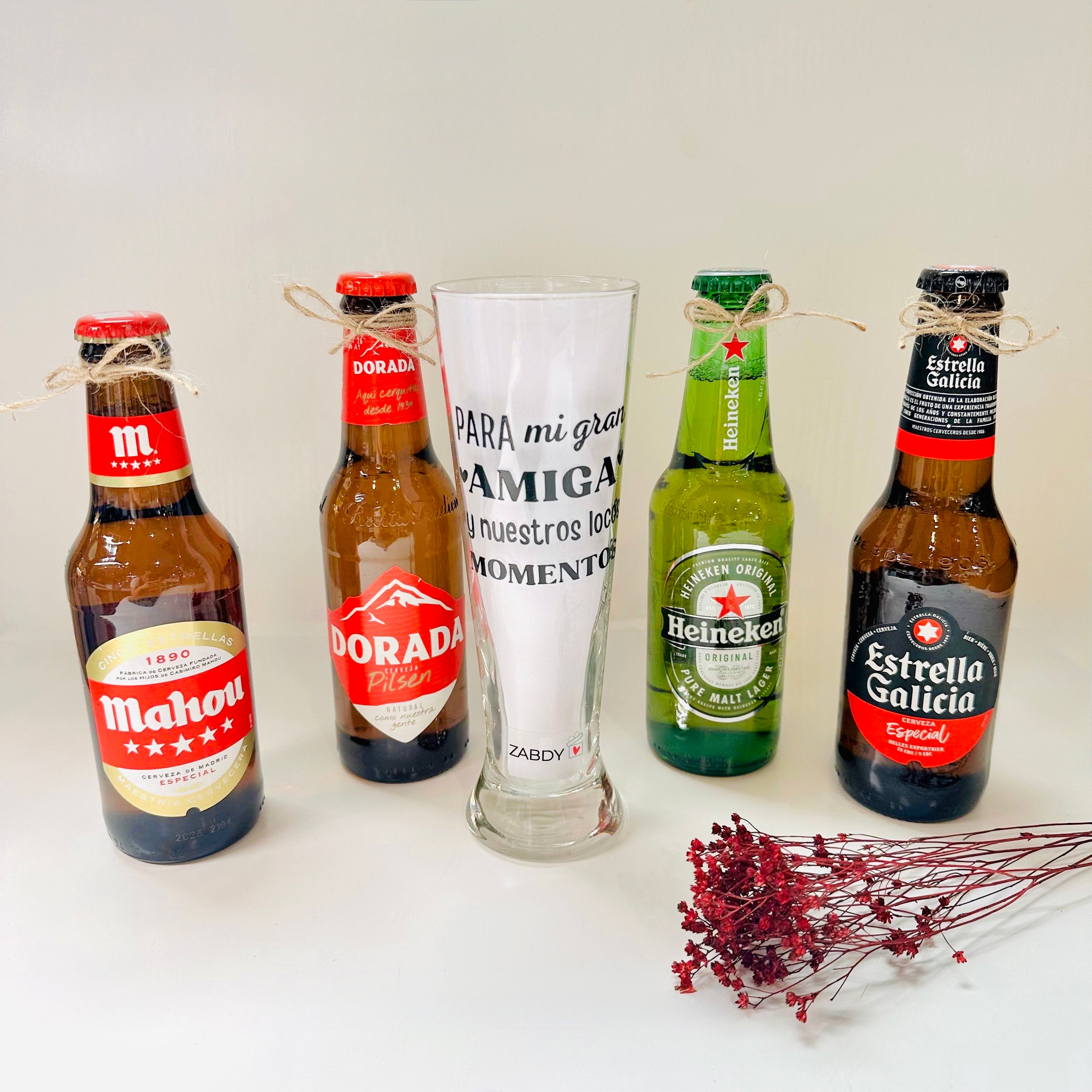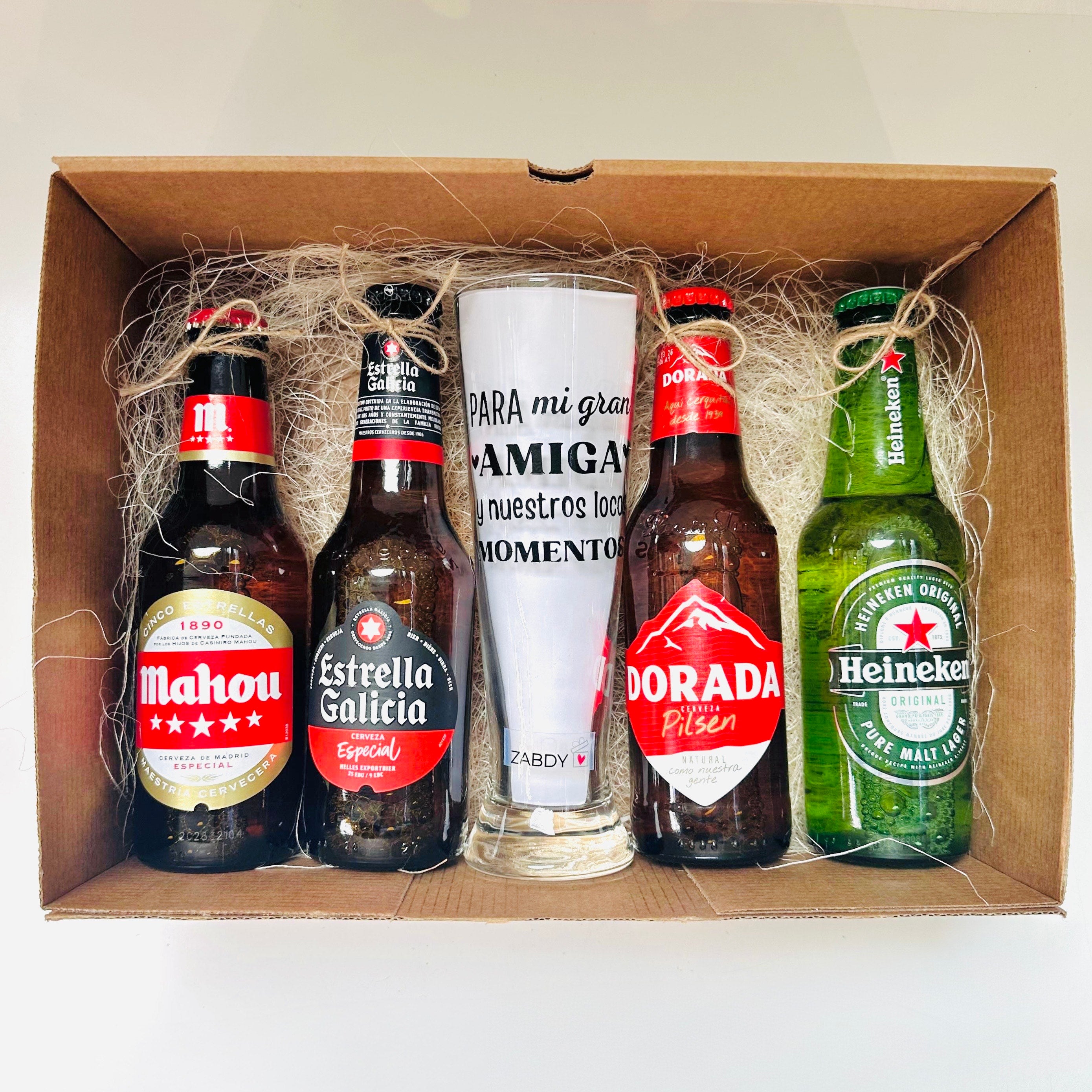 La Caja Regalo La Vida es Mejor con una Amiga como Tú es el obsequio ideal para celebrar la amistad verdadera. Con un diseño divertido y emotivo, reúne una selección de cervezas clásicas y un vaso personalizado que se convertirá en un recuerdo inolvidable. Este detalle es perfecto para cumpleaños, celebraciones especiales...