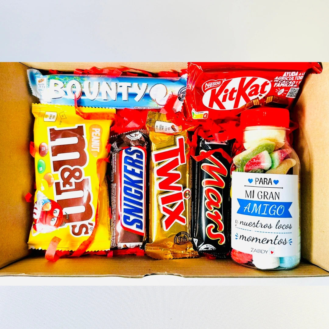 Porque los buenos amigos son el mejor remedio para cualquier día gris, esta caja regalo combina humor, dulzura y cariño en una sola presentación. Contiene chocolates variados y botella de gominolas con mensaje, ideal para compartir momentos únicos y risas.Perfecta para para recordarle cuánto valoras su amistad. Contenido: Caja con...