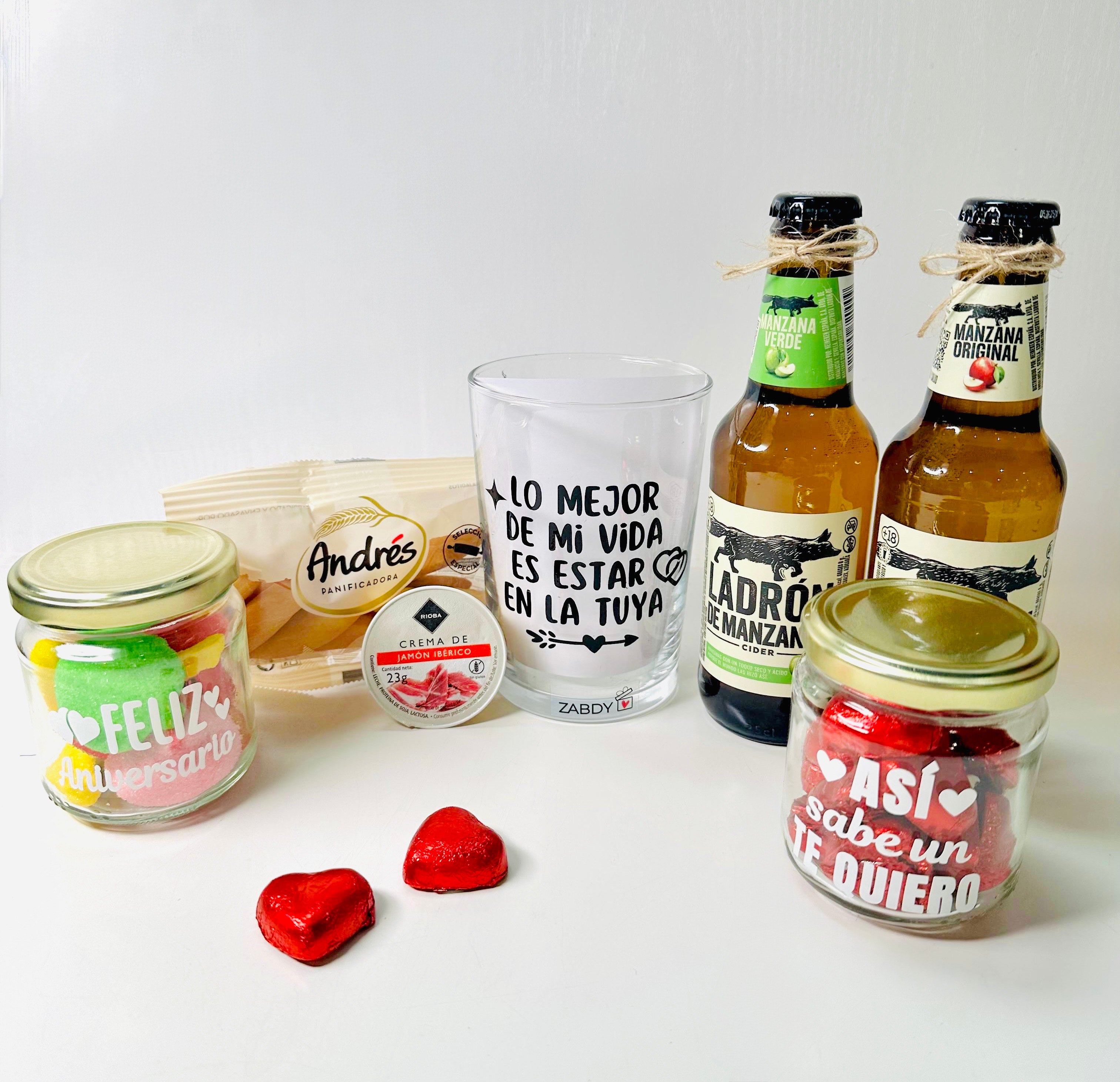 • Vaso de sidra con mensaje “Lo mejor de mi vida es estar en la tuya”