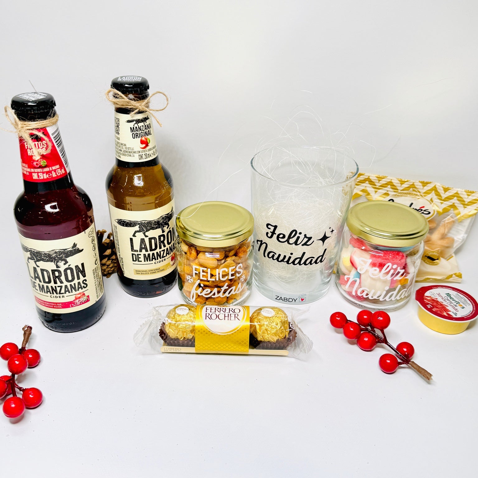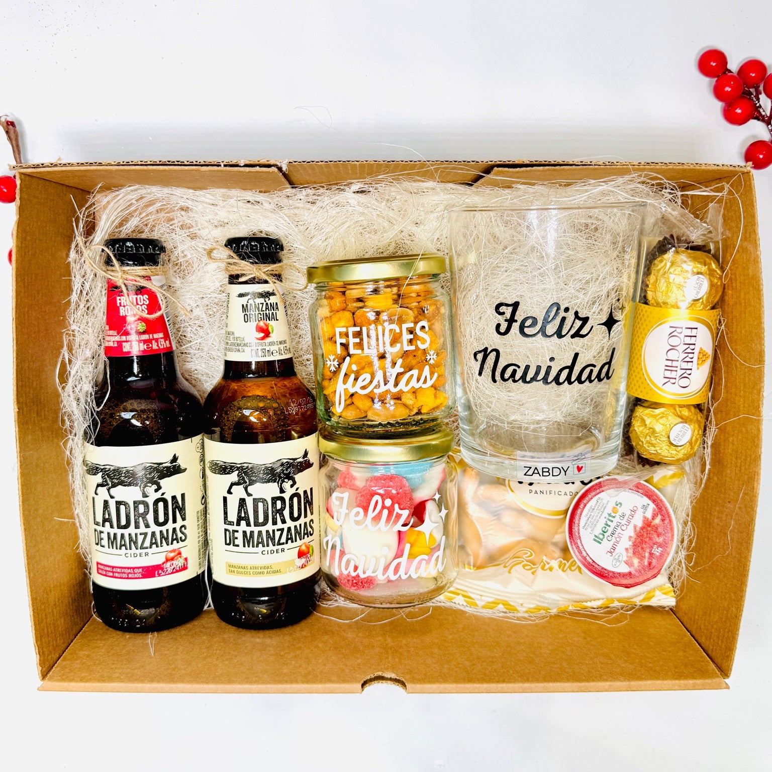 Sorprende esta Navidad con una caja de regalo navideño original, completa y lista para entregar , diseñada para convertir cualquier detalle en un momento especial. Este set incluye dos cervezas Ladrón de Manzanas , un vaso personalizado “Feliz Navidad” , un bote de snacks “Felices Fiestas” , un bote de...