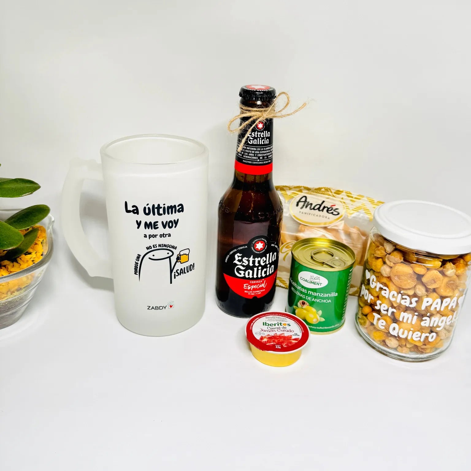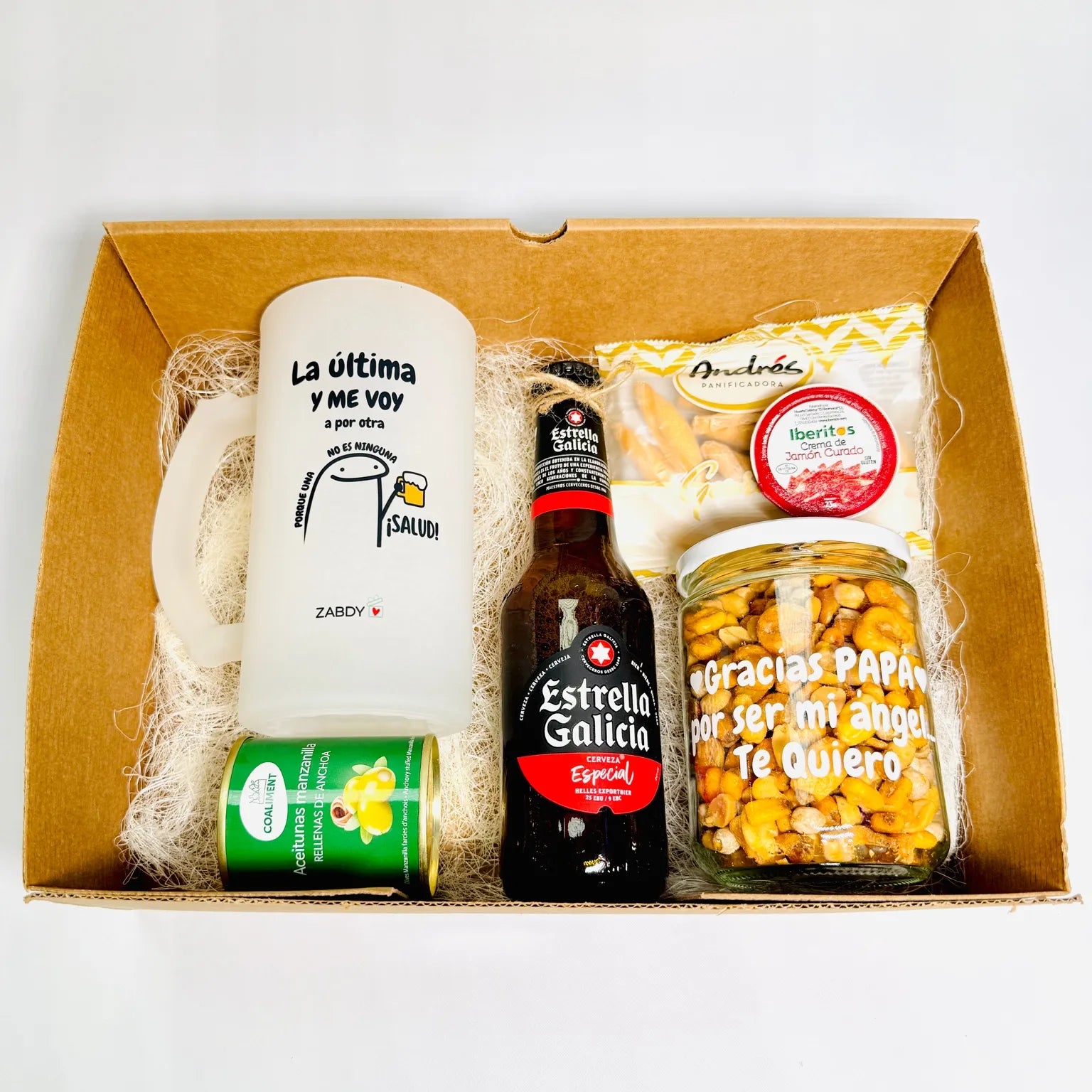 Caja regalo “Gracias papá por ser mi ángel” – Detalle original con cerveza y picoteo