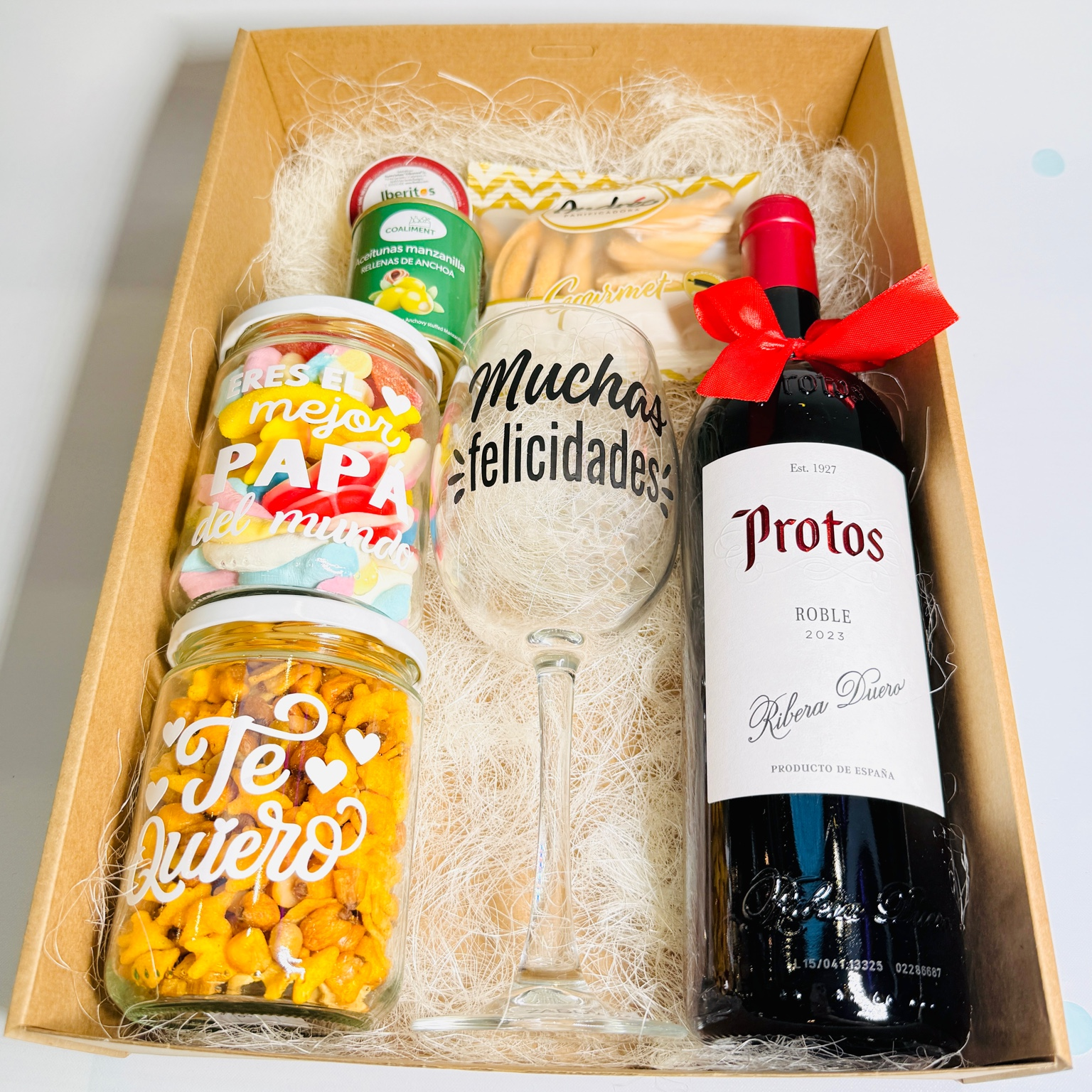 Una caja diseñada para celebrar al rey de la casa con un detalle elegante, completo y con muchísimo amor. Un regalo perfecto para cumpleaños, Día del Padre o para agradecerle cada uno de esos momentos en los que siempre está ahí. CONTENIDO: Caja con mensaje Copa de vino con mensaje...