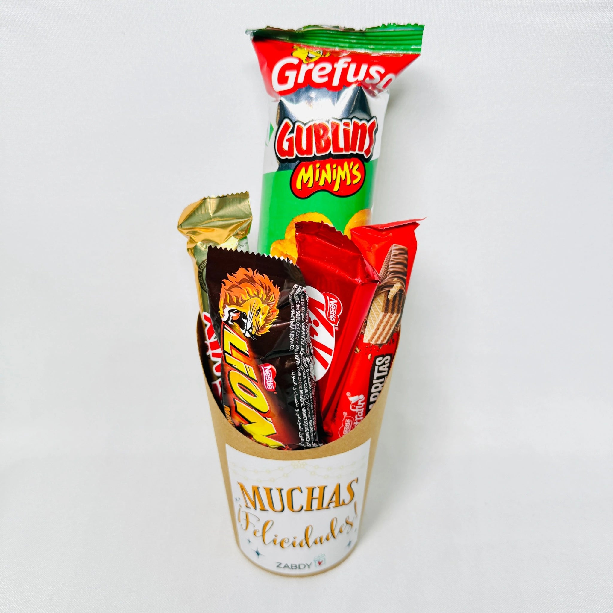 Las petacas son un acierto seguro cuando quieres sorprender con un gesto dulce y diferente.Contiene una selección de chocolates y snack, presentada en un formato compacto y elegante.Su diseño moderno y su envoltorio con lazo hacen que destaque como un detalle listo para regalar en cualquier ocasión: cumpleaños, logros o simplemente...