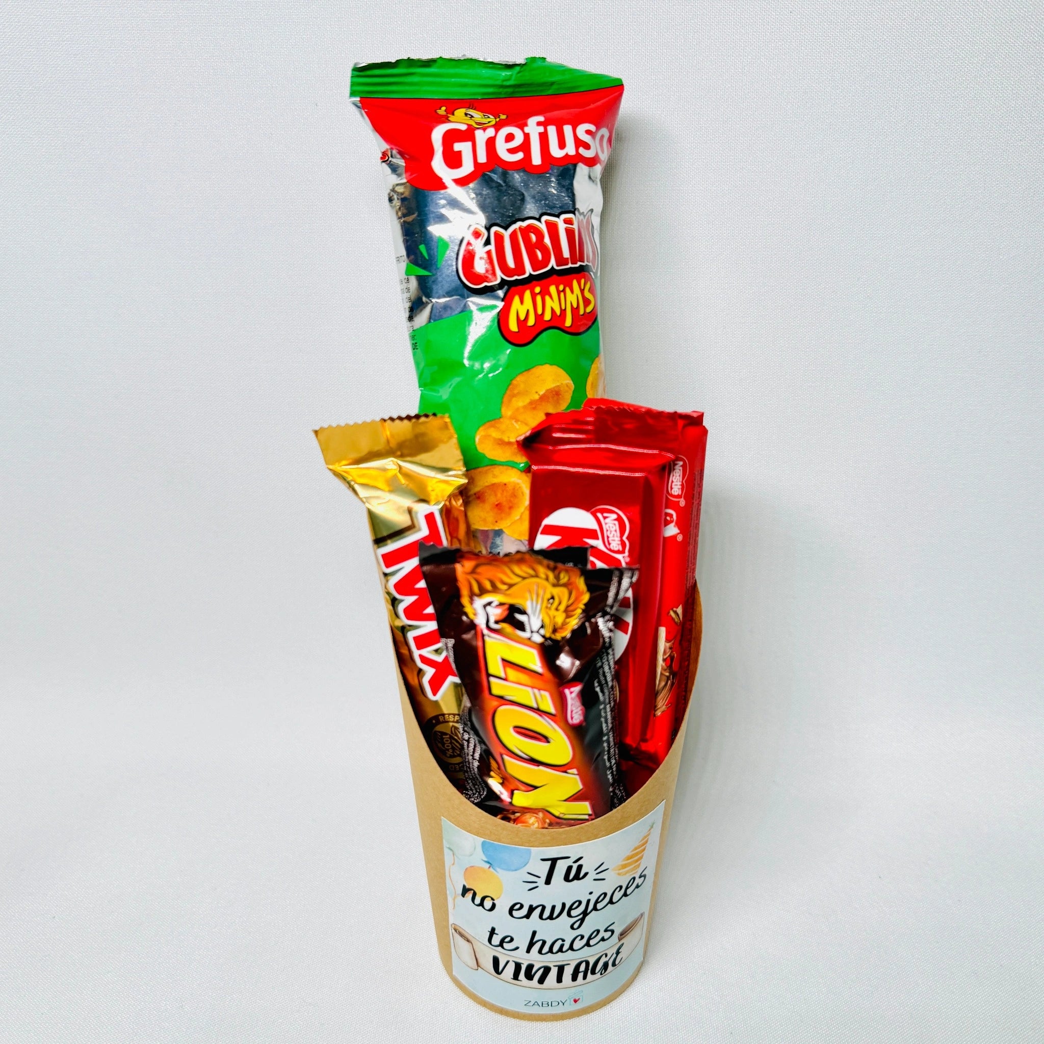 Perfecta para quienes celebran su cumpleaños con humor y buena energía.Contiene una selección de chocolates y snack, presentada en una petaca elegante y envuelta con lazo.Un detalle original, simpático y delicioso para felicitar con un guiño divertido y mucho sabor.Ideal para amigos, familiares o compañeros que saben que la edad...