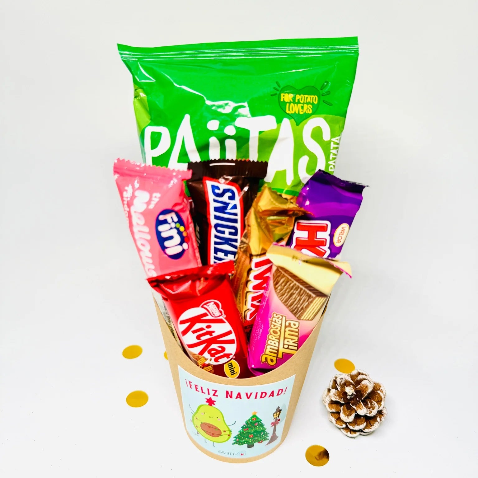 Sorprende esta Navidad con una composición llena de sabor y alegría. Un detalle perfecto para regalar a amigos, familiares, compañeros de trabajo o para completar cestas navideñas con un toque divertido y delicioso. Cada pack combina chocolates, gominolas y snacks individuales cuidadosamente seleccionados para que cada bocado sea un pequeño...