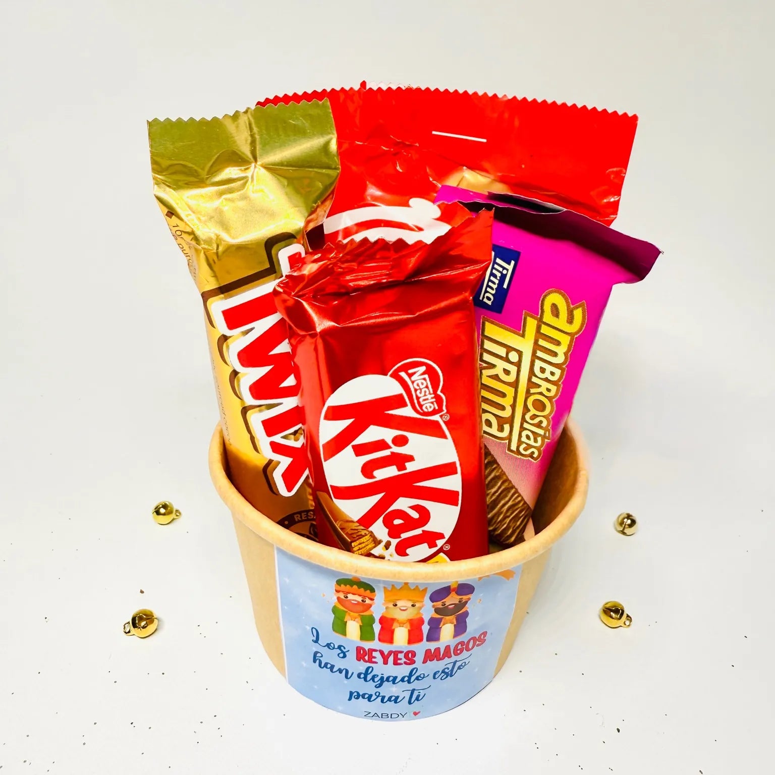 Celebra la magia del Día de Reyes con este encantador Tarro Kraft Mini Reyes Magos con Chocolates, un detalle dulce y original ideal para regalar a niños, adultos, clientes, profesores o compañeros de trabajo. Su diseño inspirado en los Reyes Magos lo convierte en un detalle perfecto para el 6...