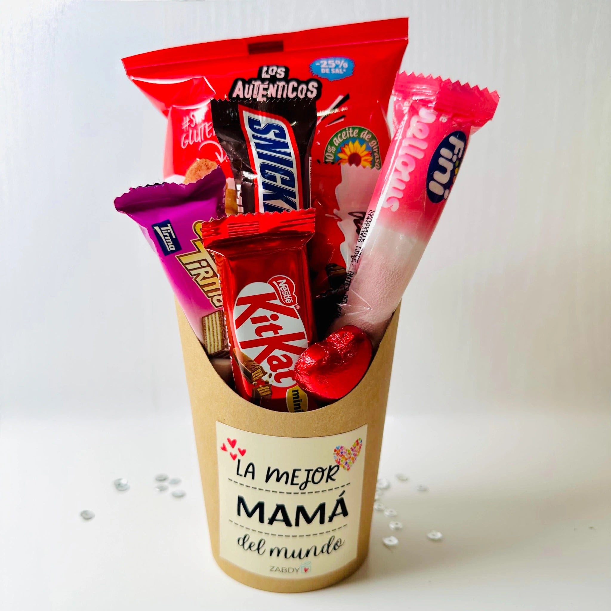 Un regalo dulce y original para sorprender a mamá como se merece. Esta petaca está llena de irresistibles chocolates y un snack, cuidadosamente presentados con el mensaje “La mejor mamá del mundo”.Perfecta para regalar y sacar una sonrisa desde el primer momento. Las chocolatinas podrían variar según la disponibilidad de nuestros...