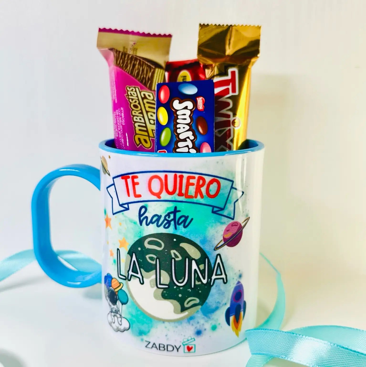 Taza “Te Quiero Hasta La Luna” con Chocolates