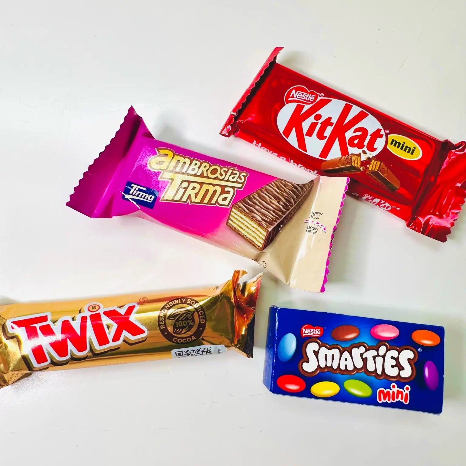 Dentro encontrarás: Twix mini, Ambrosías Tirma mini, KitKat mini y Smarties mini.