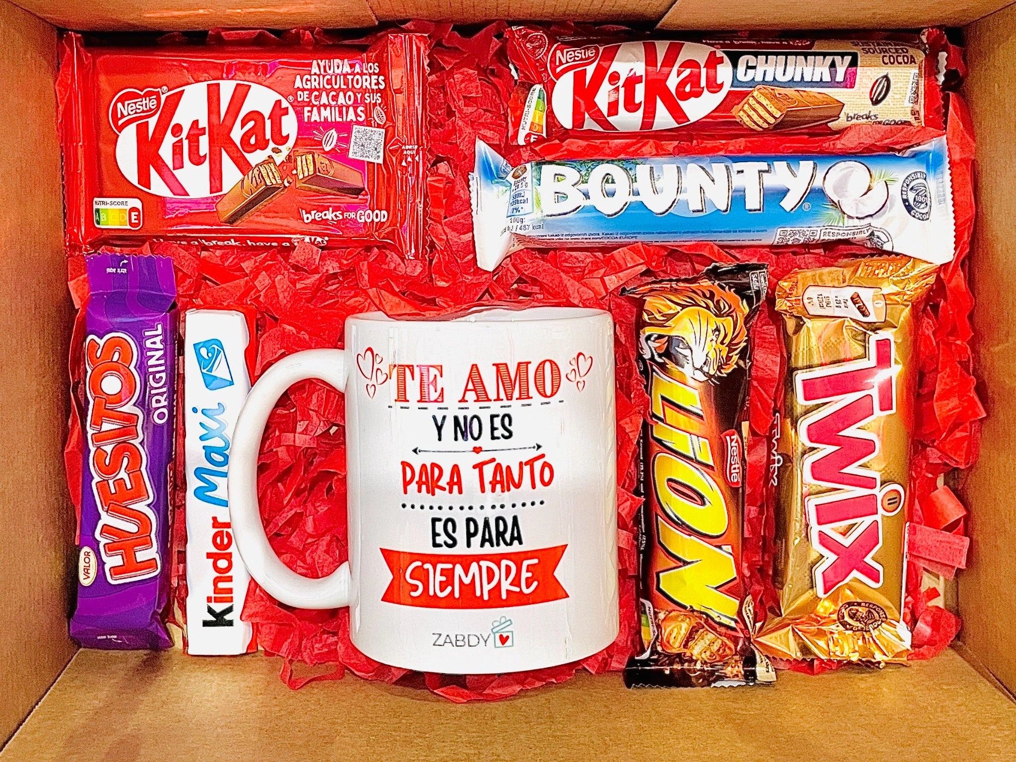 Una caja pensada para compartir entre risas, películas o una tarde especial con tu persona favorita. Ideal para decir “te quiero” de una forma original, con una selección de chocolates irresistibles y una taza con mensaje que derrite corazones.