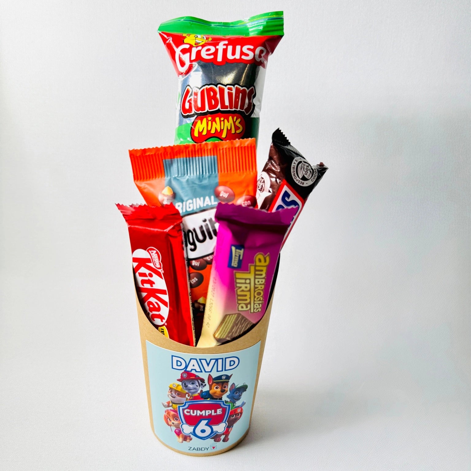 Vaso con chucherías personalizado para cumpleaños