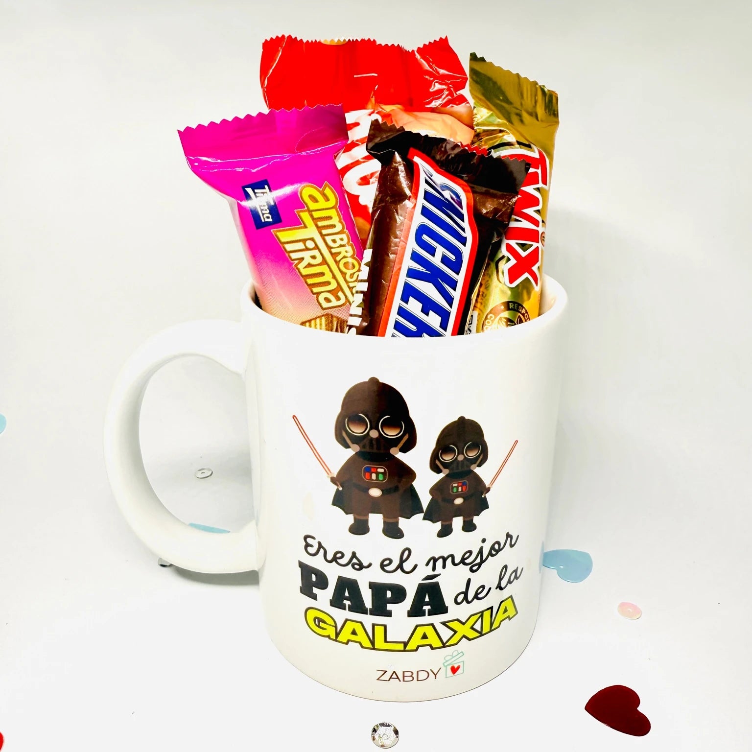 Taza Con chocolatinas – “Eres El Mejor Papá De La Galaxia”