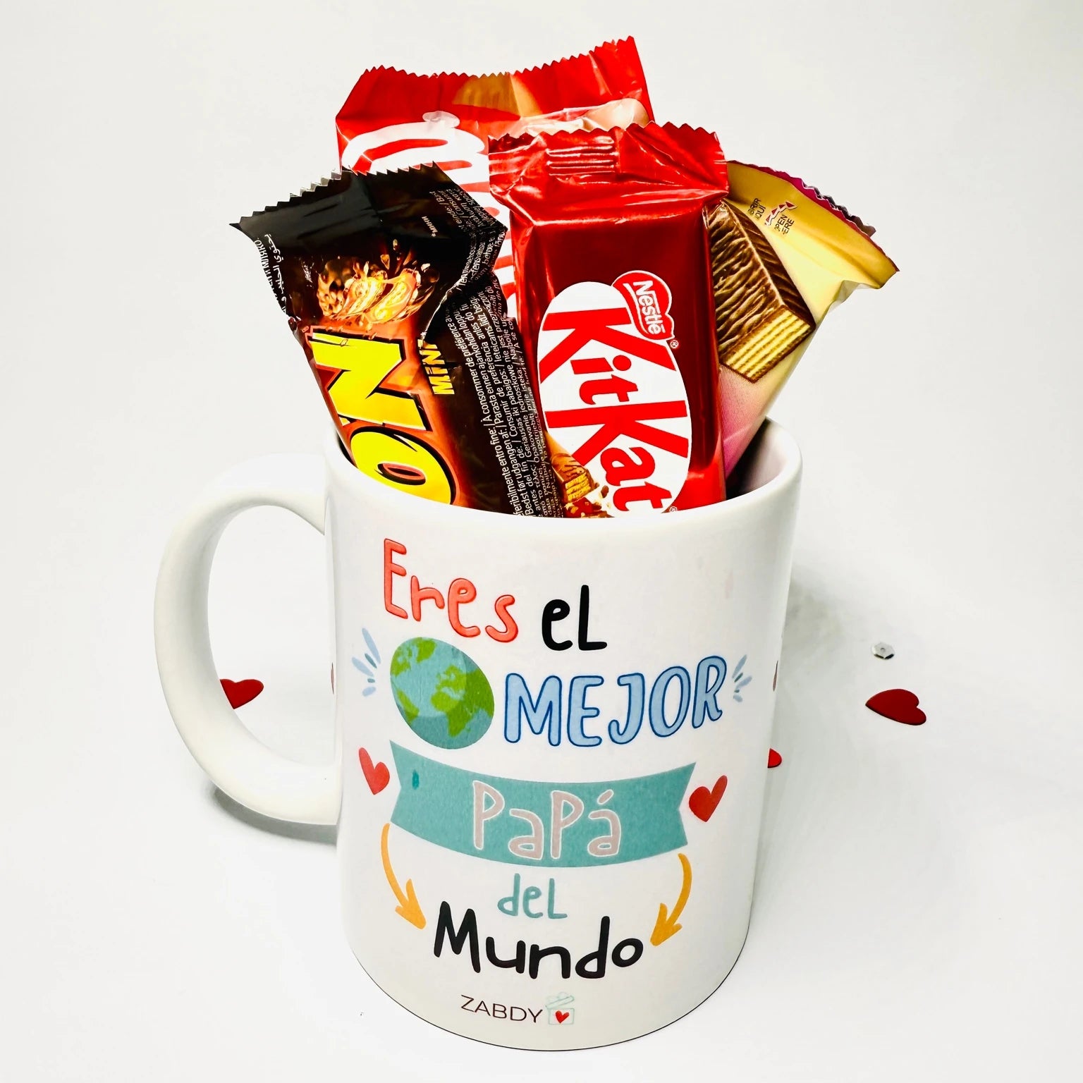 Nuestra taza personalizada "Eres el Mejor Papá del Mundo" es el regalo perfecto para sorprenderlo con un detalle dulce, original y lleno de cariño. Incluye una selección variada de chocolatinas presentada dentro de la propia taza, convirtiéndola en un detalle práctico, bonito y listo para regalar. Ideal para cumpleaños, Día...