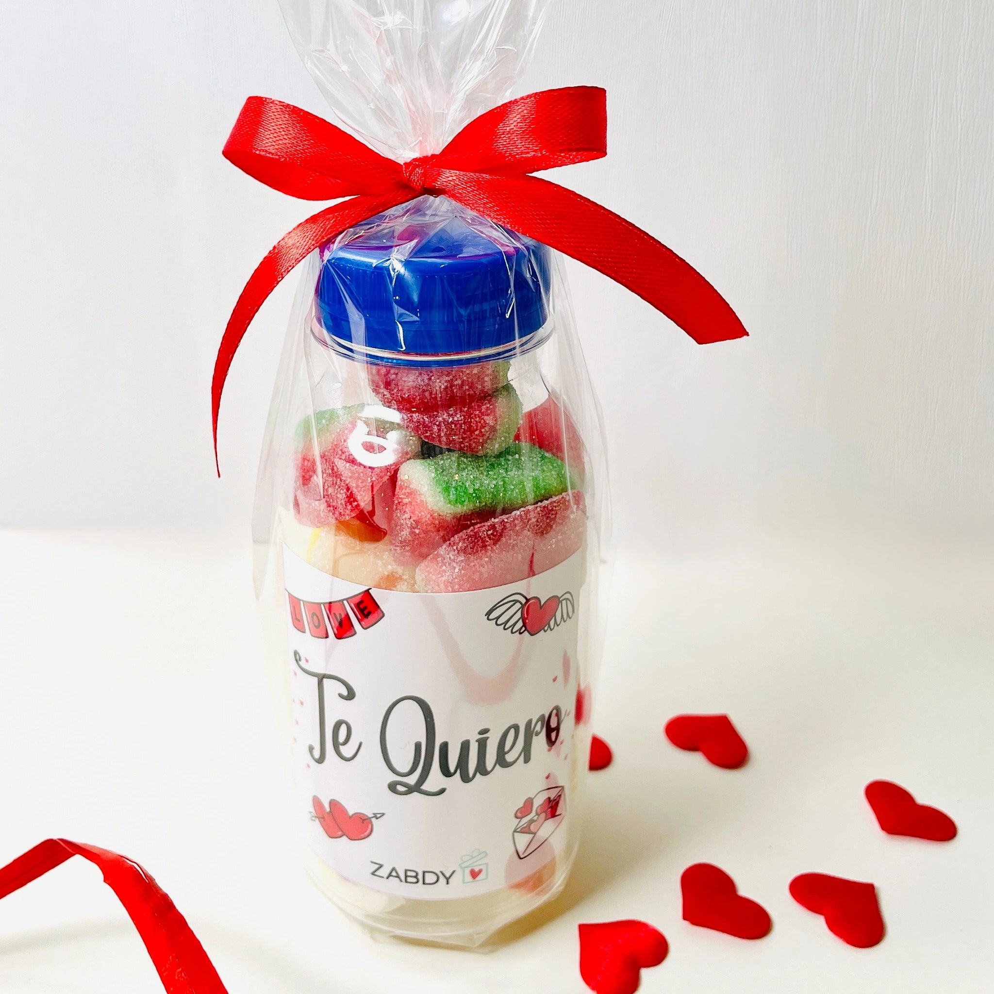 Expresa tu amor con la botella de gominolas “Te quiero”, una forma dulce y colorida de decir lo que a veces las palabras no alcanzan. Perfecta para obsequiar a esa persona especial y compartir un momento lleno de cariño. Capacidad: 250 ml Elementos decorativos no incluídos en el precio.