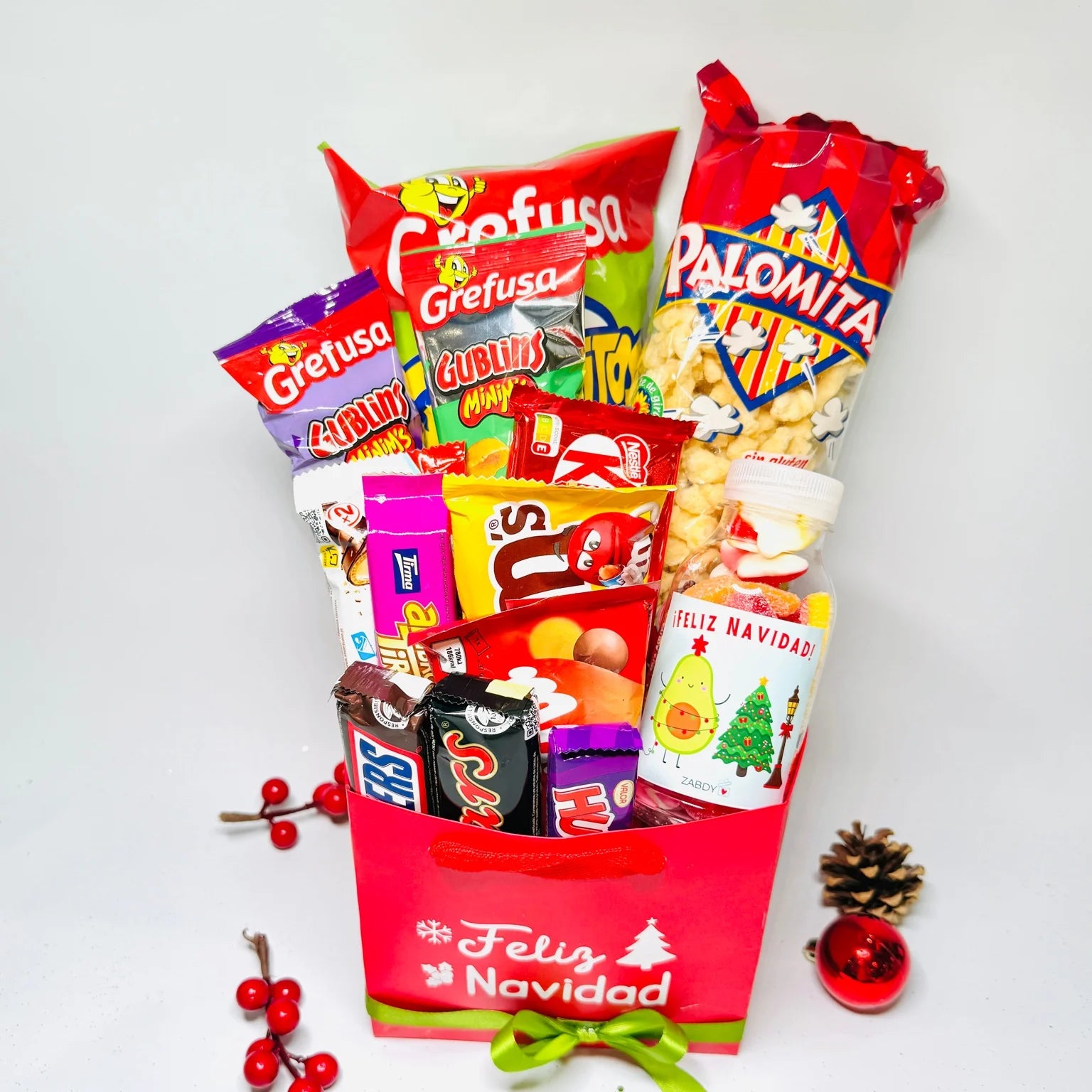 Sorprende esta Navidad con nuestra Cesta Navideña de Chuches y Snacks, un detalle irresistible lleno de sabor, alegría y buenos momentos. Esta cesta es perfecta para regalar a niños, adultos, amigos, compañeros de trabajo o para complementar tus cajas navideñas Zabdy con un toque dulce y divertido. Una opción perfecta...