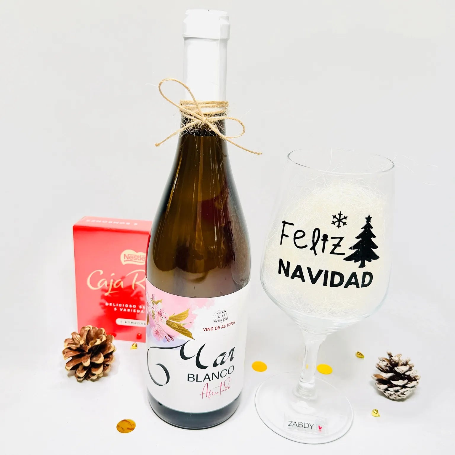 Bolsa Regalo Navidad con Copa Personalizada y Vino – Detalle Elegante para Fiestas