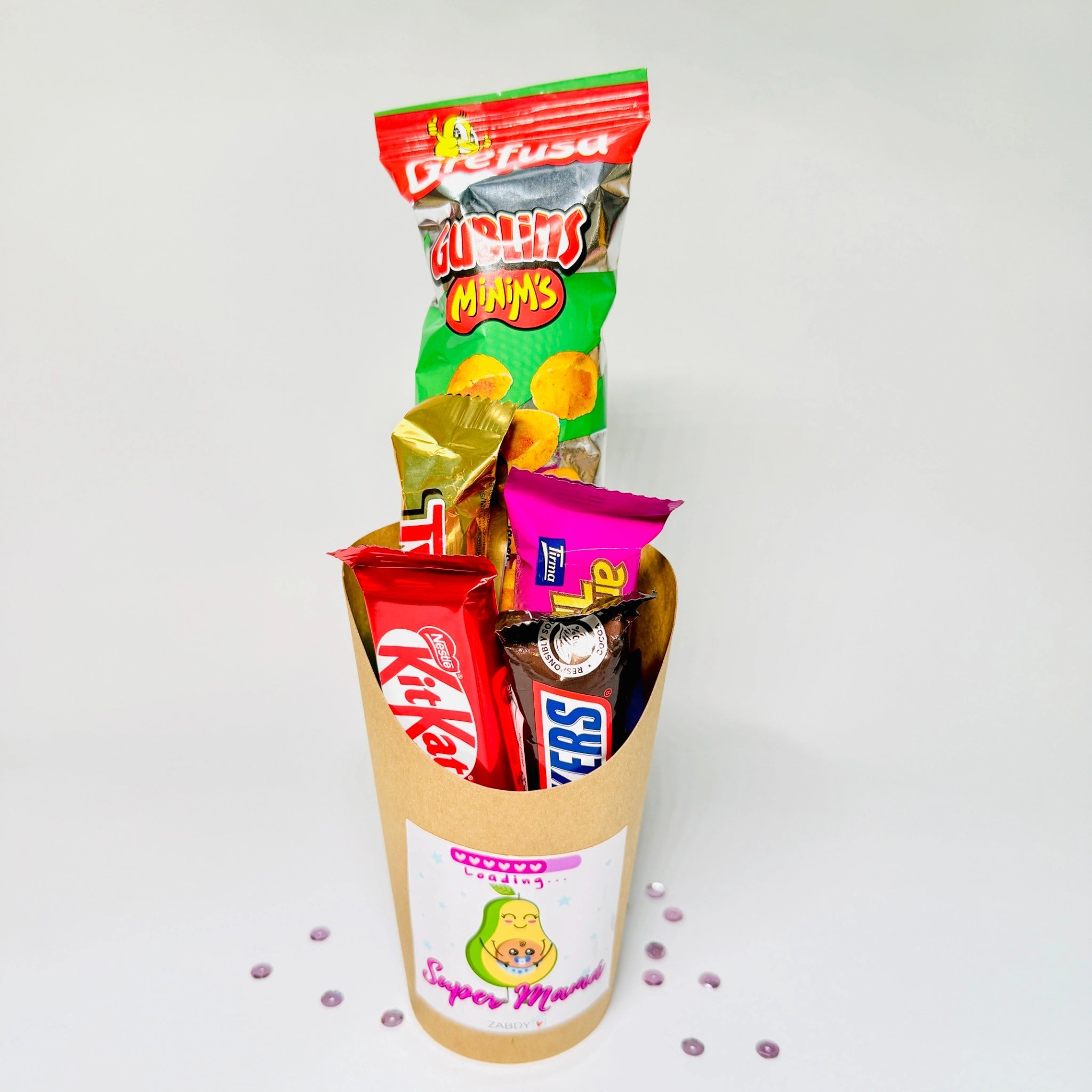Porque las mamás no tienen capa, pero sí un poder infinito para hacerlo todo con amor. Este vaso kraft está pensado para celebrar a esas mujeres que siempre dan lo mejor de sí. Lleno de chocolatinas y snacks irresistibles, viene envuelto con un bonito lazo y un diseño divertido que...