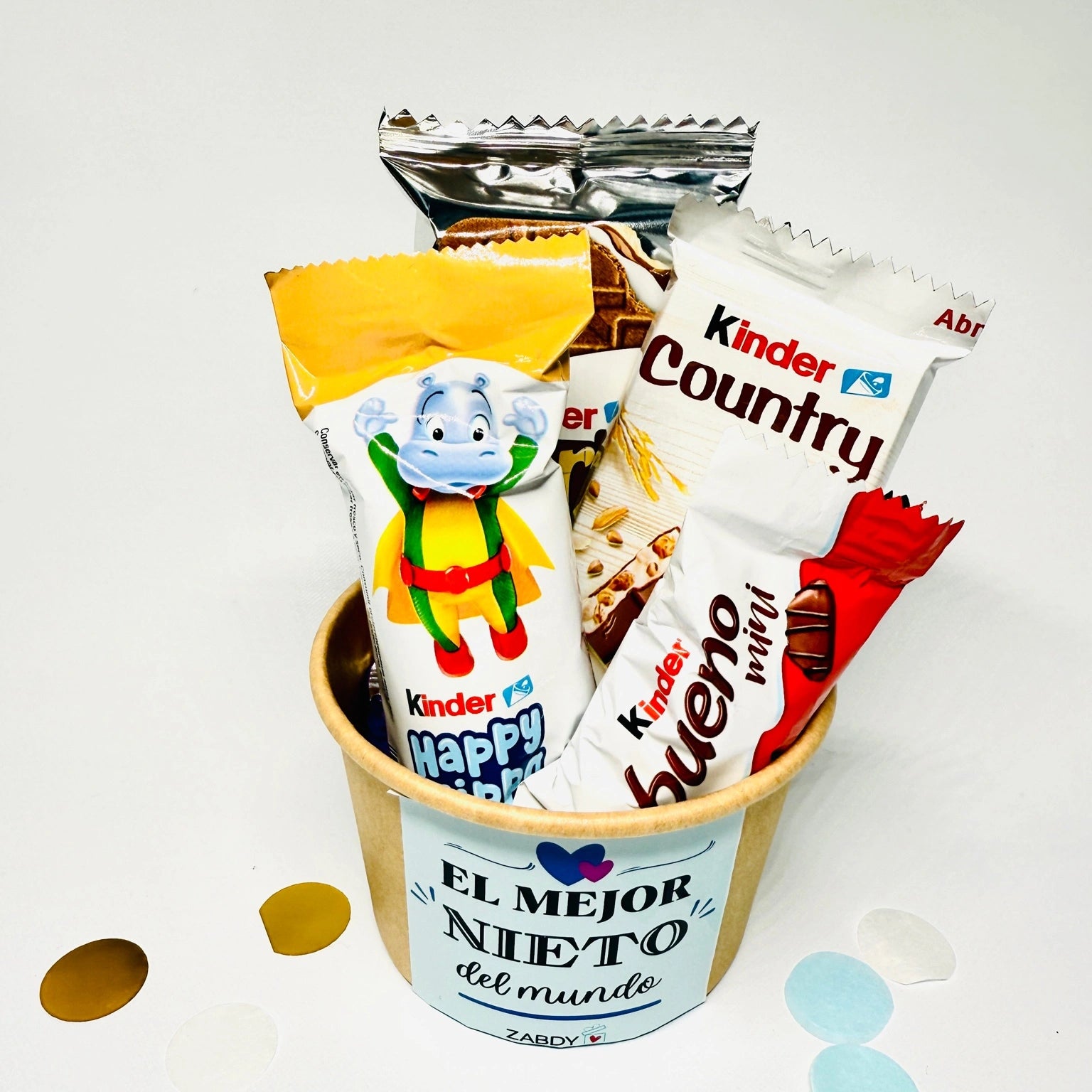 Mini Tarro Kraft con Chocolates Kinder – Regalo Dulce para Nietos
