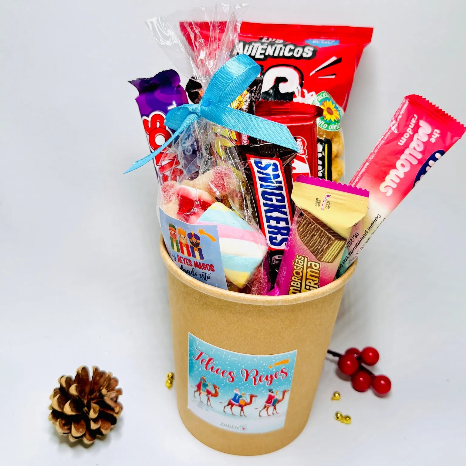 Celebra la magia del 6 de enero con este Tarro Kraft Dulces Reyes Magos, un regalo lleno de ilusión, sabores y pequeños detalles que hacen sonreír. Cada tarro está cuidadosamente preparado con una selección de chucherías, chocolatinas y snacks ideales para sorprender a niños, adultos, amigos, compañeros de trabajo o para complementar cualquier caja regalo de Reyes.