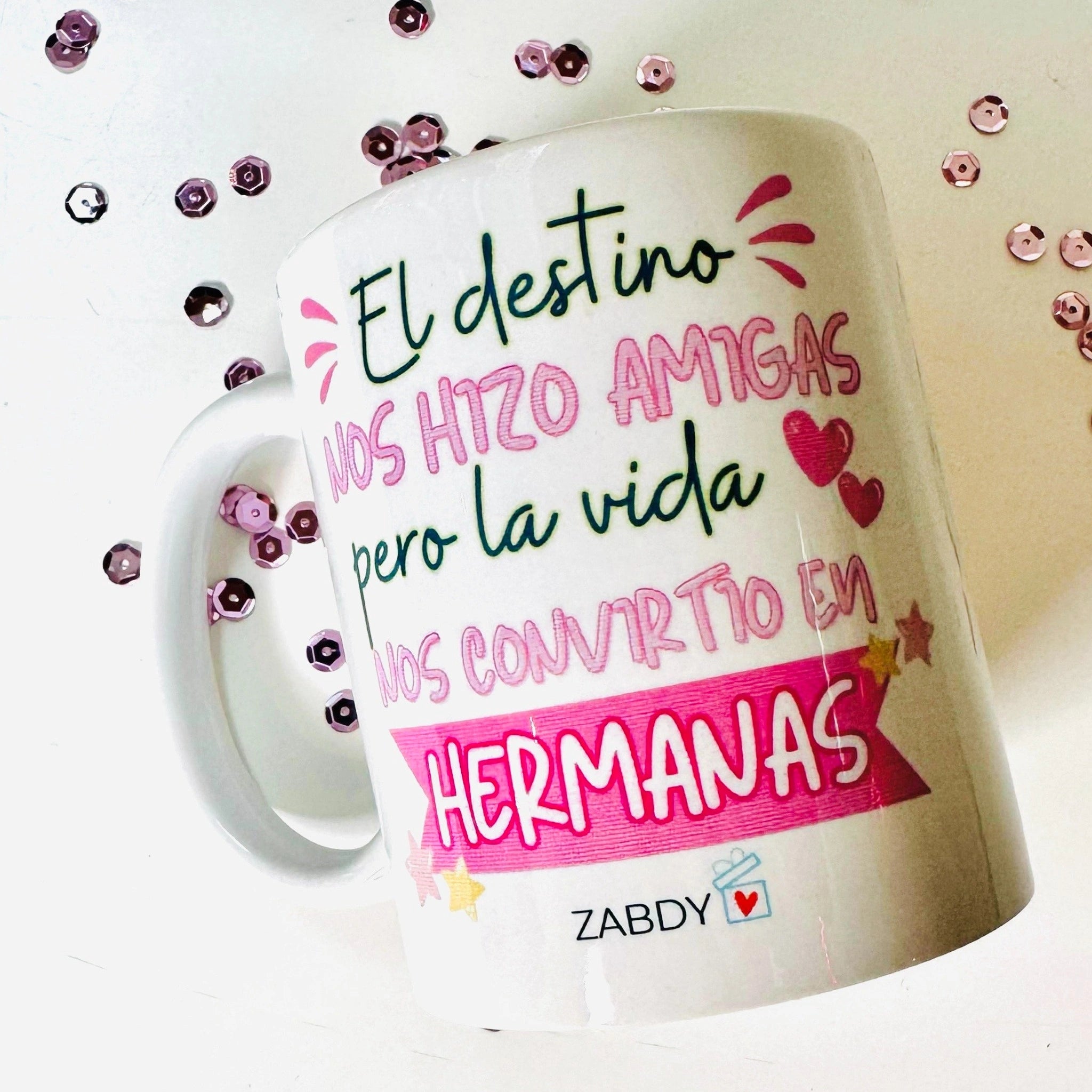 Taza “El Destino Nos Hizo Amigas Pero La Vida Nos Convirtió En Hermanas” – Regalo Emotivo Para Amigas Especiales