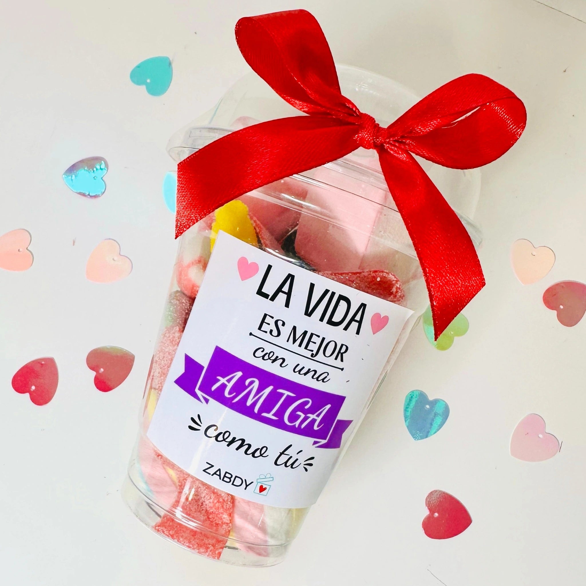 Vaso Grande De Gominolas “La Vida Es Mejor Con Una Amiga Como Tú”